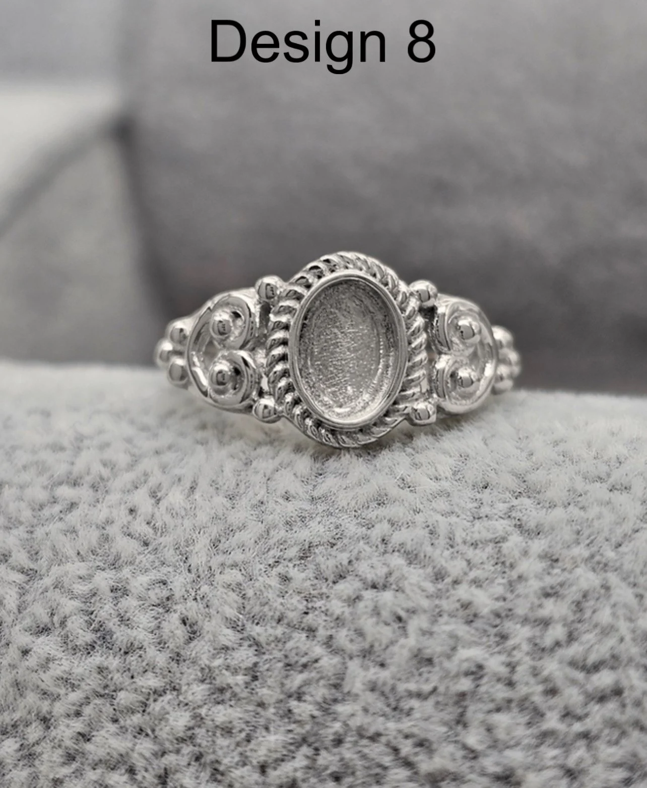 A timeless channel band crafted in solid sterling silver or 9k gold and made size for a perfect fit. Its delicate window can be filled with your breastmilk or a loved one’s ashes, creating a keepsake to treasure forever.