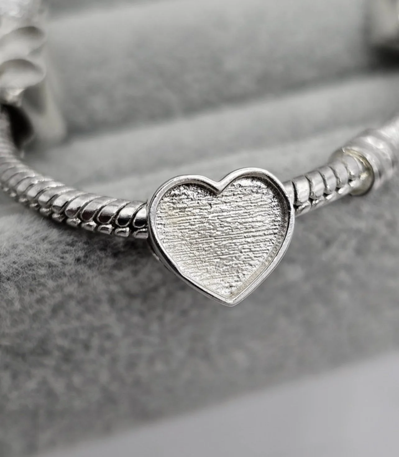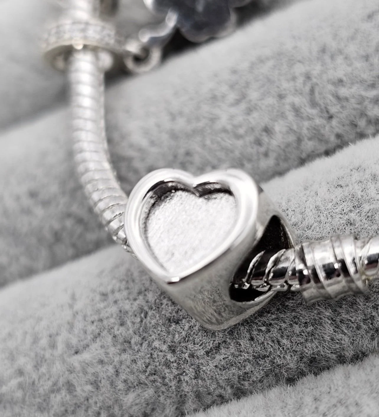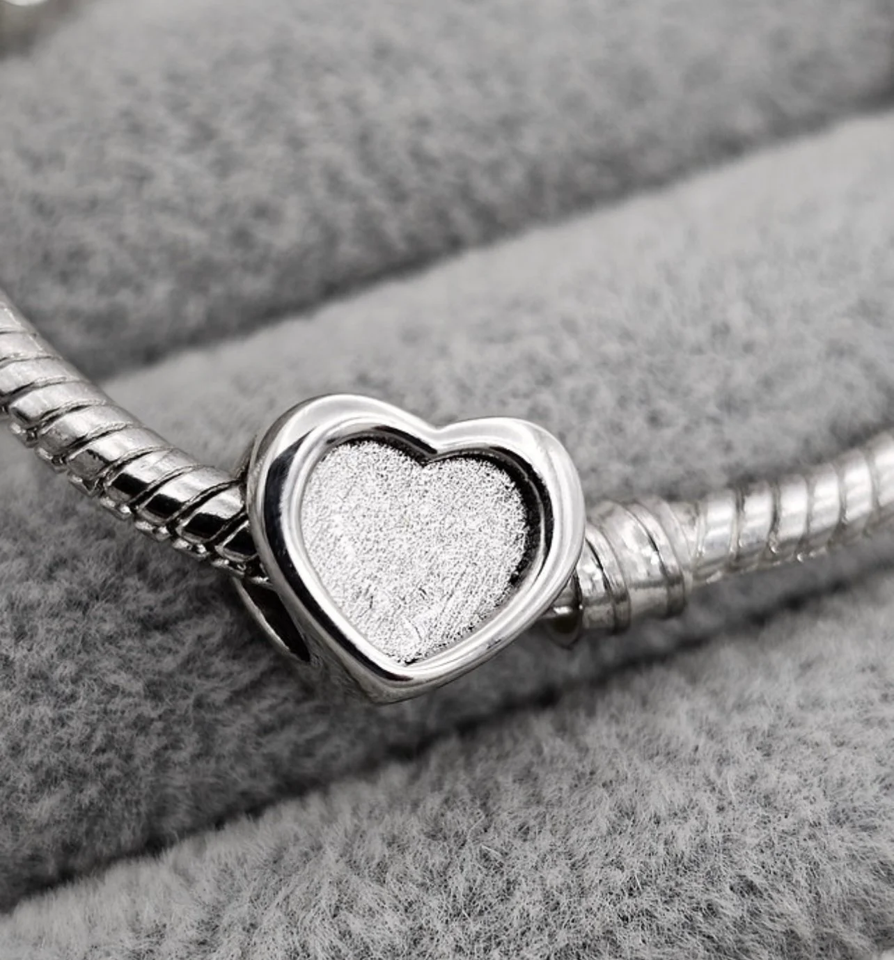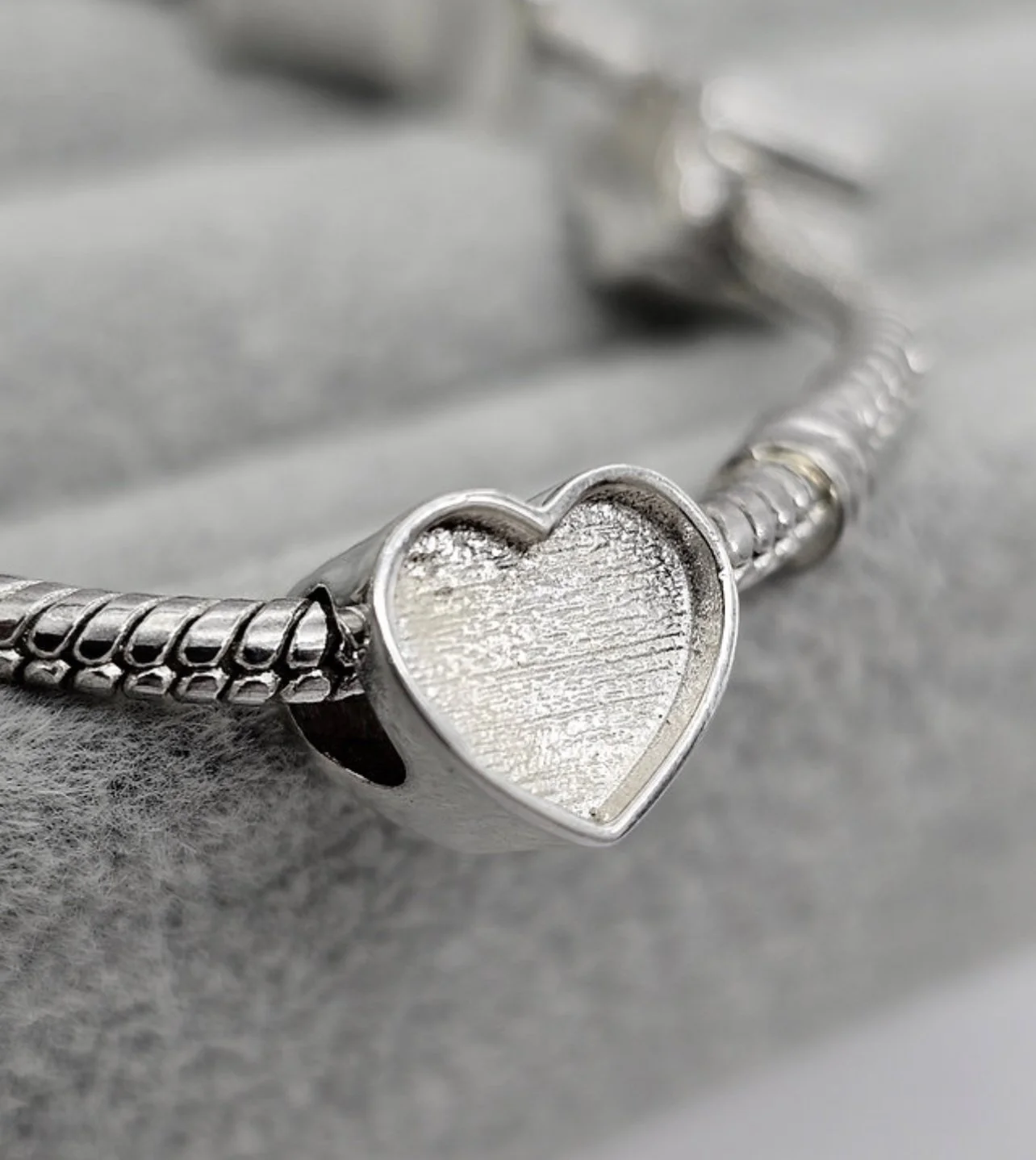 Designed to pair perfectly with The Beaded Charm Bracelet, this Silver elegant charm features a personal inclusion at its heart. Handmade with your breastmilk or a loved ones ashes, it turns a classic style into something uniquely yours. Add charms as your family grows and your story continues.